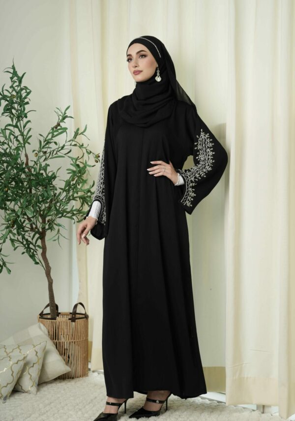 • Open front abaya with buttons.