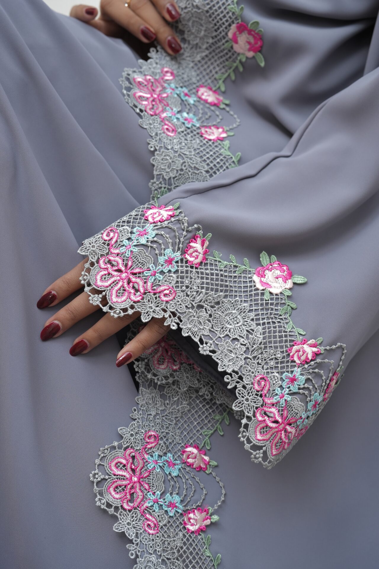 • Two Layer Abaya with Flowery and Colourful Embroidery.